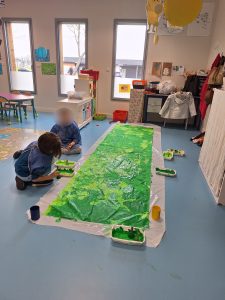 Pendant ces journées, les élèves ont aussi participé à des ateliers autour des albums d’Agathe Hennig, sur le thème des animaux et de leurs écosystèmes principalement. Ils ont créé 2 fresques inspirées des albums « Sous les feuilles » et « sous la mer ». Ils ont créé à partir de l’album « Qu’est-ce que tu caches? », mimé les animaux en motricité, cherché des livres sur les animaux à la bibliothèque, et les CP ont fait un atelier d’écriture.