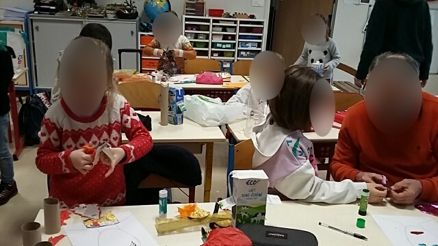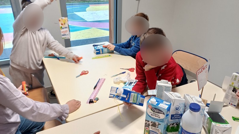 Les élèves de CP, CE1, CE2 ont valorisé des déchets en fabriquant de nouveaux objets: mangeoires, boites à trésor, bracelets ou des oeuvres d’art: portraits, animaux.